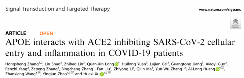 原文链接APOE interacts with ACE2 inhibiting SARS-CoV-2 cellular entry and inflammation in COVID-19 patients | Signal Transduction and Targeted Therapy (nature.com)