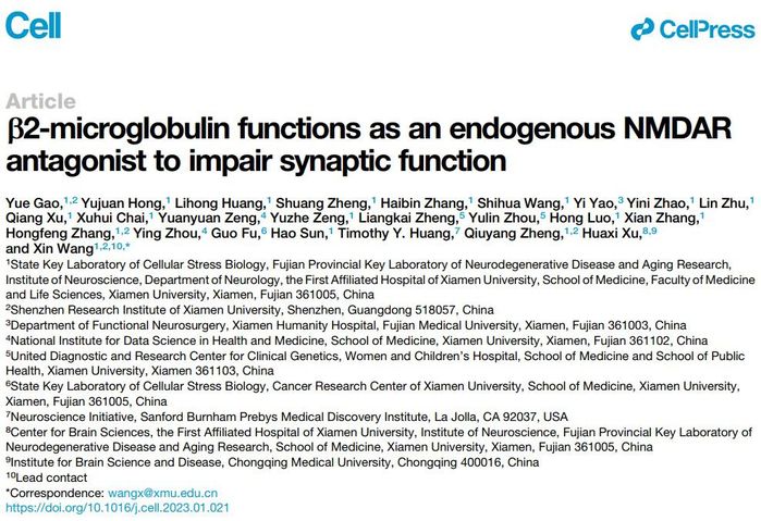 3月2日,厦门大学神经科学研究所王鑫教授团队在国际顶级学术期刊《Cell》上发表了题为β2-microglobulin functions as an endogenous NMDAR antagonist to impair synaptic function的研究成果,解析了唐氏综合征外周免疫与中枢神经系统病理的关联,为理解唐氏认知损伤的机制提供了全新视角。