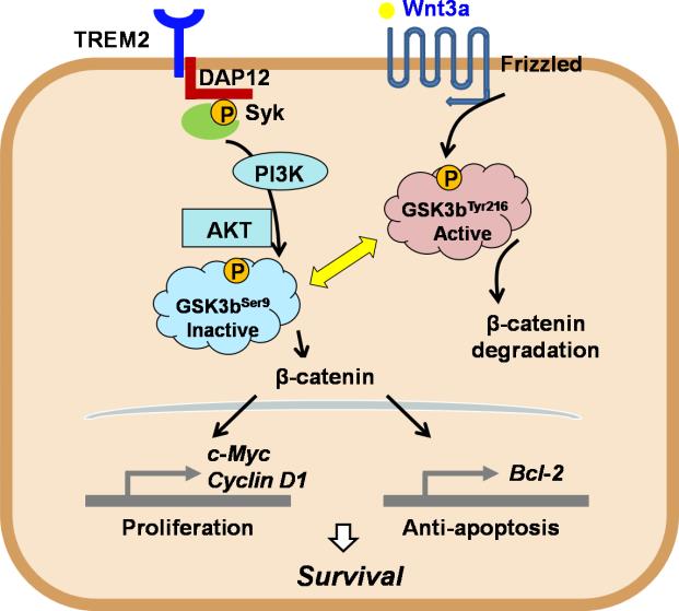 TREM2调控Wnt/β-catenin通路和小胶质细胞存活示意图