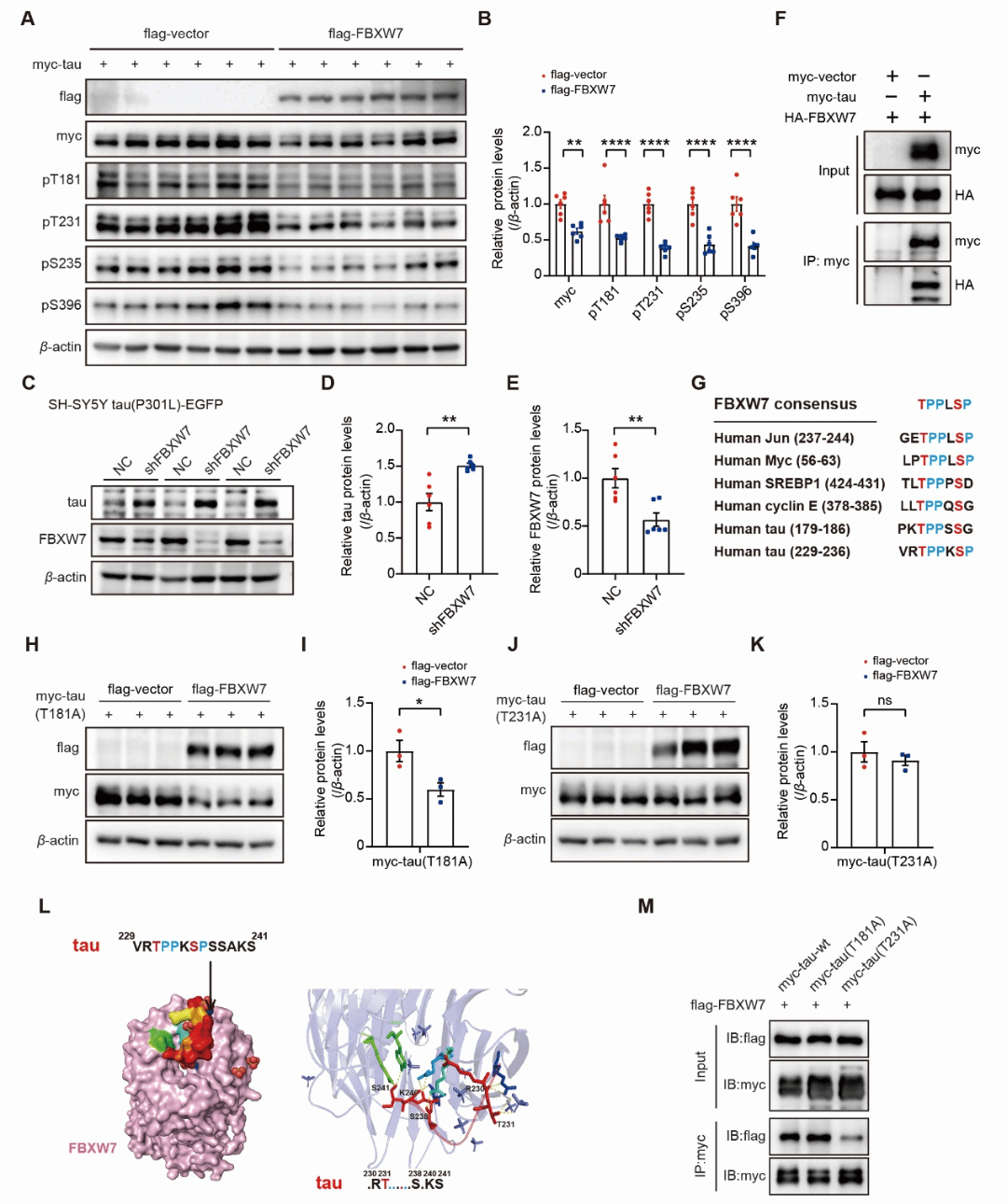 图3. FBXW7调控tau降解依赖于tau Thr-231位点的磷酸化修饰
